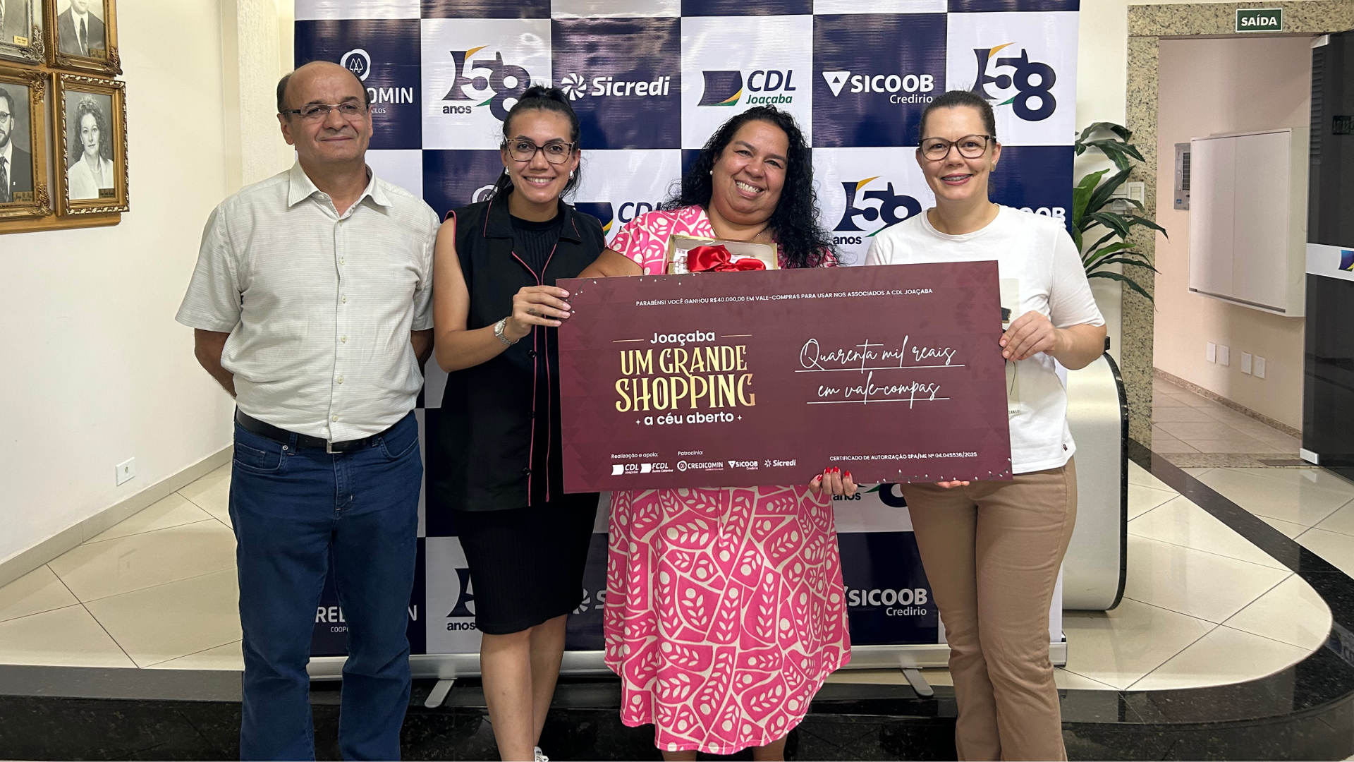 O primeiro prêmio entregue foi o grande destaque da campanha: R$ 40 mil em vale-compras, que ficaram com Neide Aparecida Santana de Souza, cliente da loja Vest Me. O valor expressivo simboliza a grandiosidade da ação e o impacto positivo gerado pela iniciativa da CDL Joaçaba.
