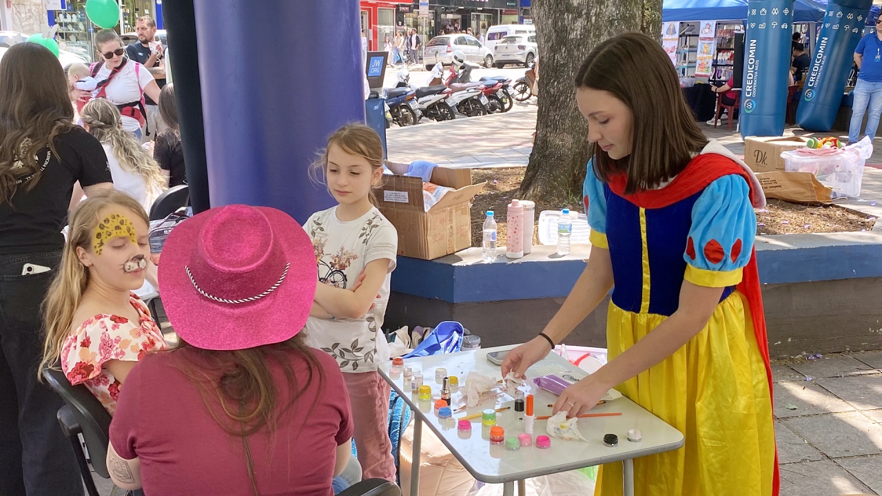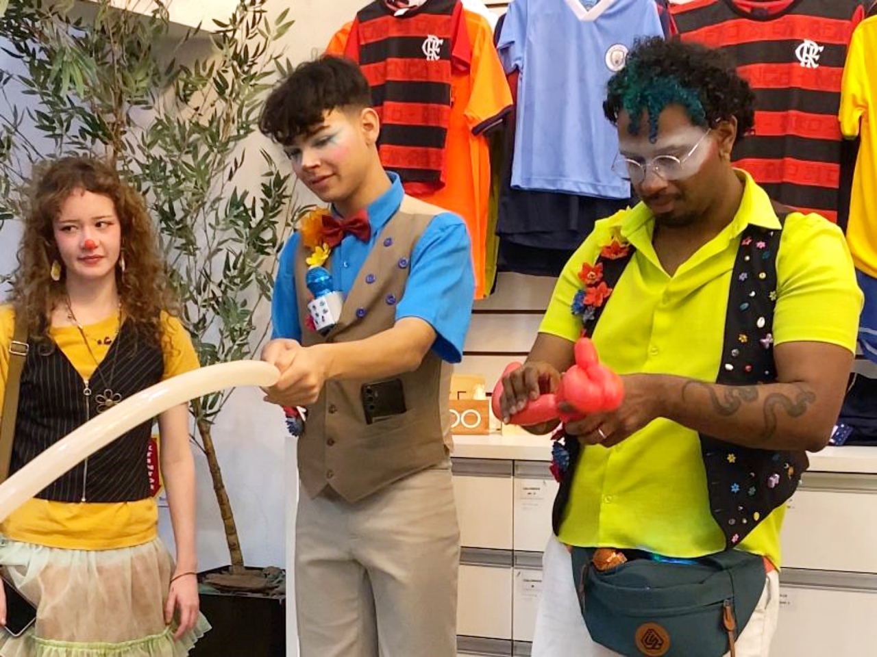 Como parte da programação, o evento também contou com uma ação itinerante que percorreu o comércio local associado à CDL. Os palhaços da Treta Teatro visitaram as lojas, distribuindo pirulitos e bichinhos de balão, levando o clima festivo para ainda mais perto da comunidade.