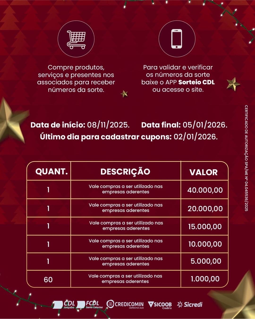 De 08 de novembro de 2025 a 05 de janeiro de 2026 você concorre vale compras de até R$40.000,00!